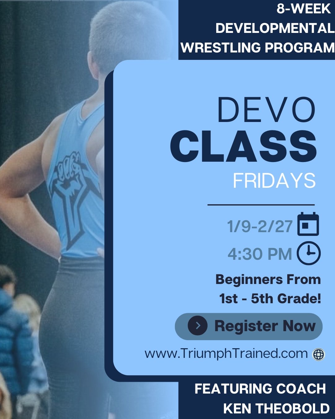 Join us for an 8-week wrestling journey designed for beginners from 1st grade through 5th grade!